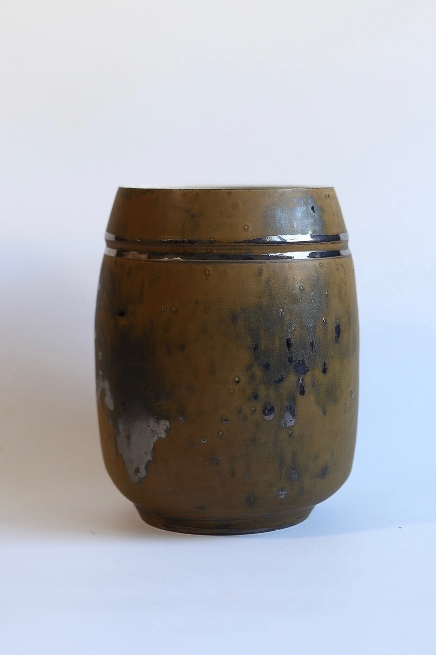 Handcrafted with intention, this vase captures the quiet balance between shadow and light — the essence of dusk and dawn. Its wider opening and softened silhouette invite natural movement, while the earthy glaze reveals subtle metallic tones and organic variations unique to each piece.
